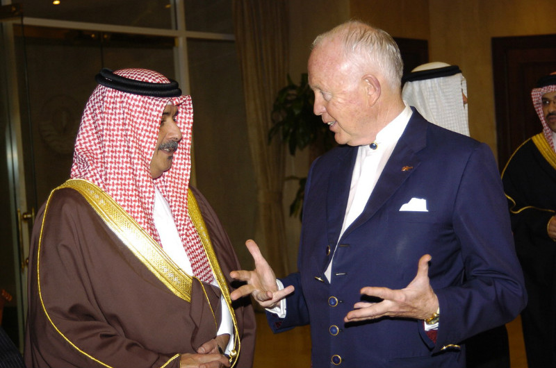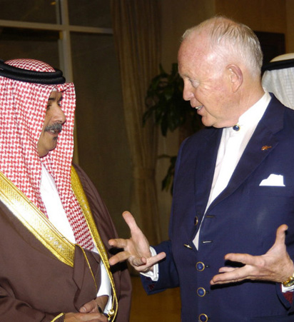 2007年世界脑力锦标赛承办国巴林王国的哈马德王子与博赞教授亲切交谈